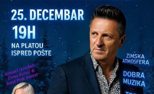 U četvrtak, 25. decembra 2025. godine, od 19:00 sati, na platou ispred zgrade pošte, Kladanj će postati mjesto praznične čarolije. Posjetioce očekuje spektakularan muzički program sa nastupima Nihada Alibegovića i Esme Kovač, uz podršku talentovanih domaćih izvođača i energičnog benda „Pink Panter“. Veče obećava nezaboravnu atmosferu, ljepotu zajedništva i pozitivnu energiju koja cijeli Kladanj ispunjava prazničnim duhom.