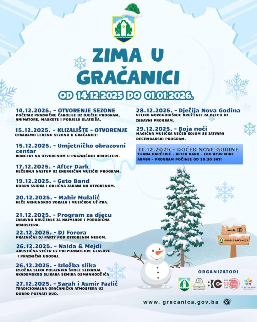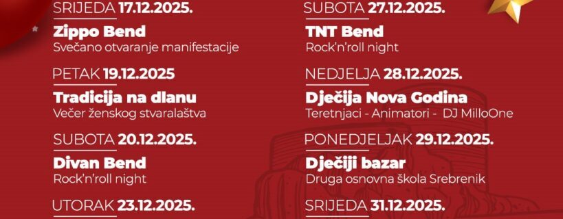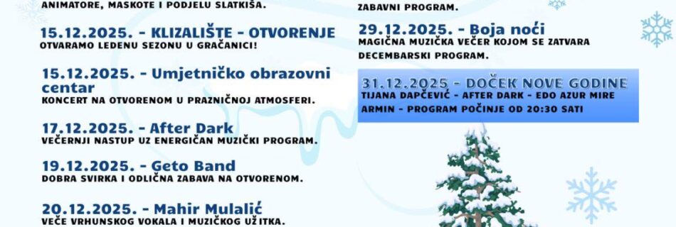 Pozivamo sve građane i goste da budu dio ove zimske priče, da zajedno stvorimo nezaboravnu prazničnu atmosferu i uljepšamo posljednje dane godine uz smijeh, muziku i druženje.