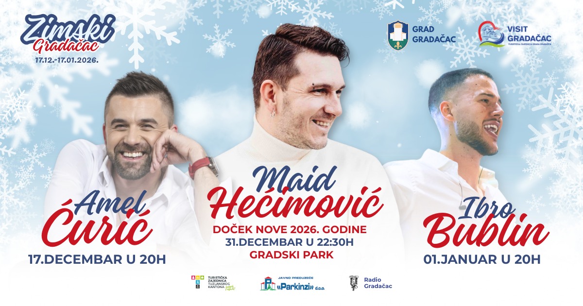 Najavljeno je da će svečano otvaranje zimskog festivala “Zimski GRADačac” biti upriličeno koncertom poznatog izvođača Amela Ćurića, koji je zakazan za srijedu, 17. decembar i rezervisan za zabavu. Ova manifestacija predstavlja najavu početka sedmica sa raznovrsnim kulturnim, zabavnim i sportskim događajima, a trajat će do 17. januara 2026. godine.
