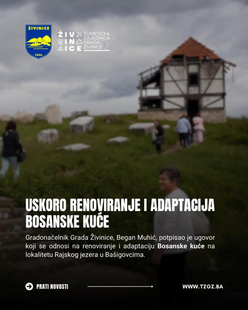 Iz Turističke zajednice Grada Živinice objavljuju; Grad Živinice započinje novu fazu unapređenja turističkih kapaciteta kroz projekat obnove Bosanske kuće na prostoru Rajskog jezera. Ovim korakom potvrđuje se strateško opredjeljenje lokalne uprave da sistemski ulaže u sadržaje koji istovremeno čuvaju tradiciju i podižu kvalitet turističke ponude grada Živinice i Tuzlanskog kantona.